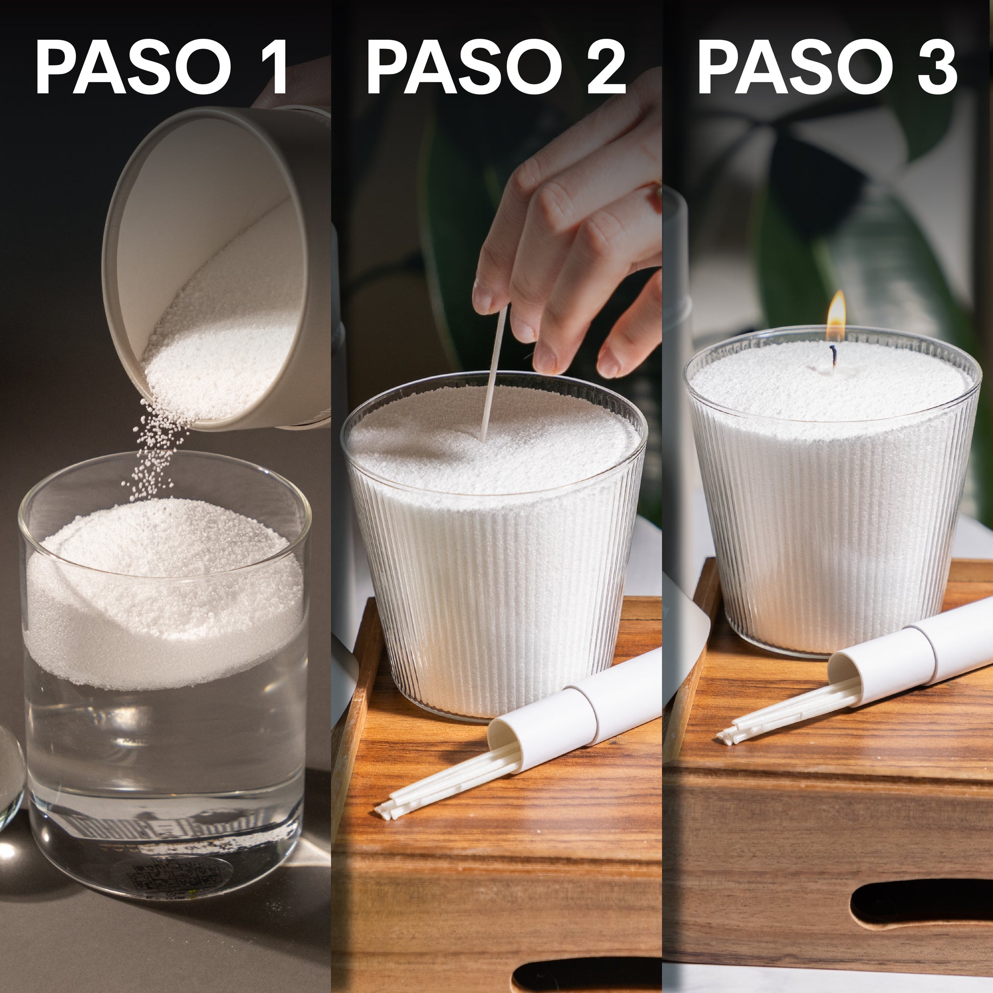 En general, esto significa un ancho mínimo de 10 cm en la parte más angosta del recipiente para una sola mecha. Aun así, es fundamental probarlo con cuidado y verificar que el recipiente no se caliente demasiado durante el uso.